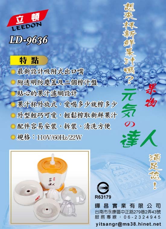 曄昌實業有限公司成立於1989年,自成立以來即專業於各種電器產品製造、研發改良,目前主力生產各類型吹風機,家庭用、營業場所均可適用,今後不斷研發新產品,以因應廣泛家庭及營業場所使用,歡迎國內外採購商、貿易商、經銷商共同合作,開發市場。