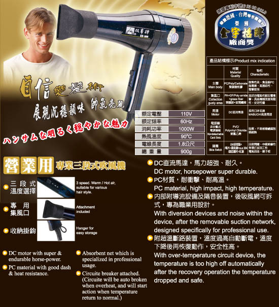 5. 超靜音設計,後吸風網可拆式,專為職業美髮推薦。