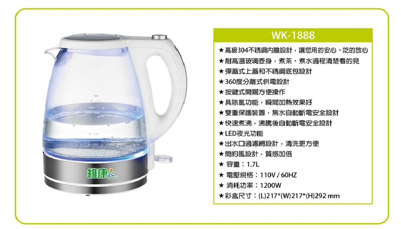 * 快速煮沸,沸騰後自動斷電安全設計。