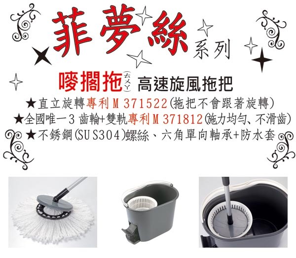 ● 直立旋轉專利M371522 (拖把不會跟著轉)